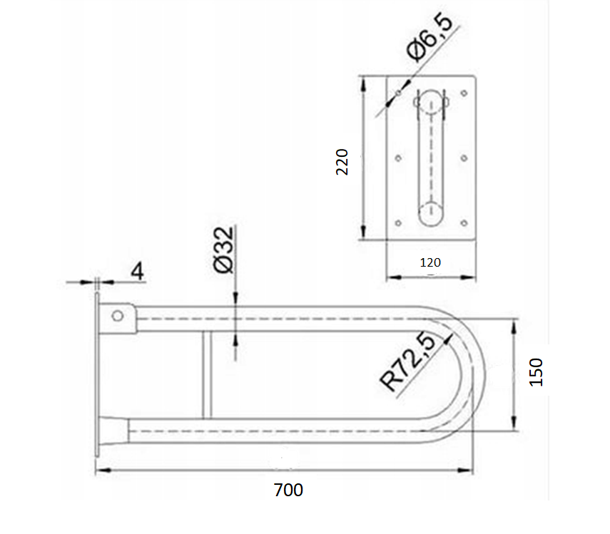 Uchwyt uchylny łukowy do WC 70cm Ø 32 BIAŁY