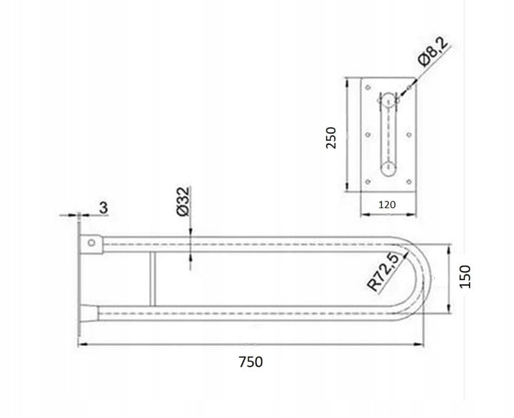 Uchwyt uchylny łukowy do WC 75cm Ø 32