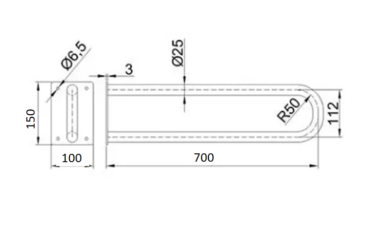 Uchwyt łukowy stały do WC 70cm Ø 25 Czarny