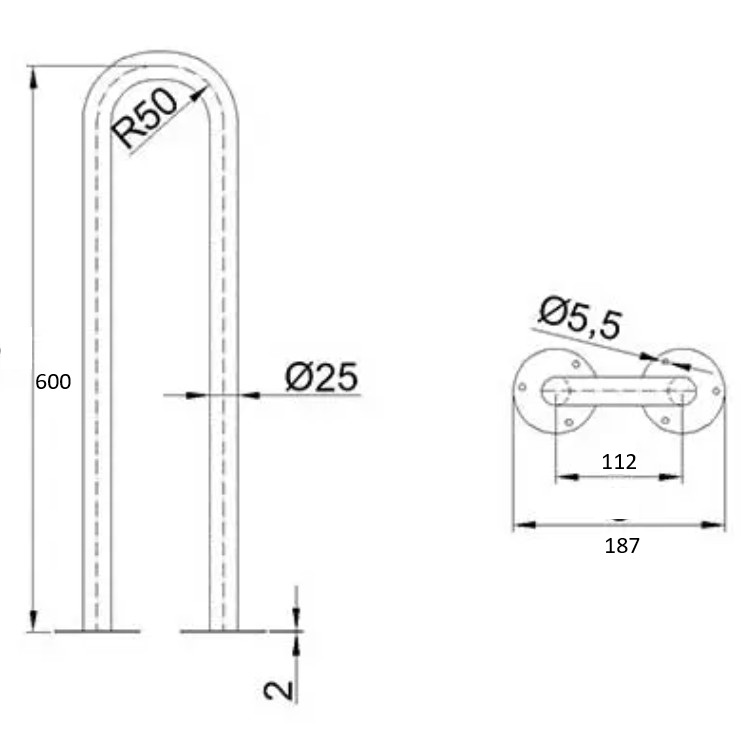 Uchwyt umywalkowy stały BIAŁY 60 cm fi 25 dla niepełnosprawnych