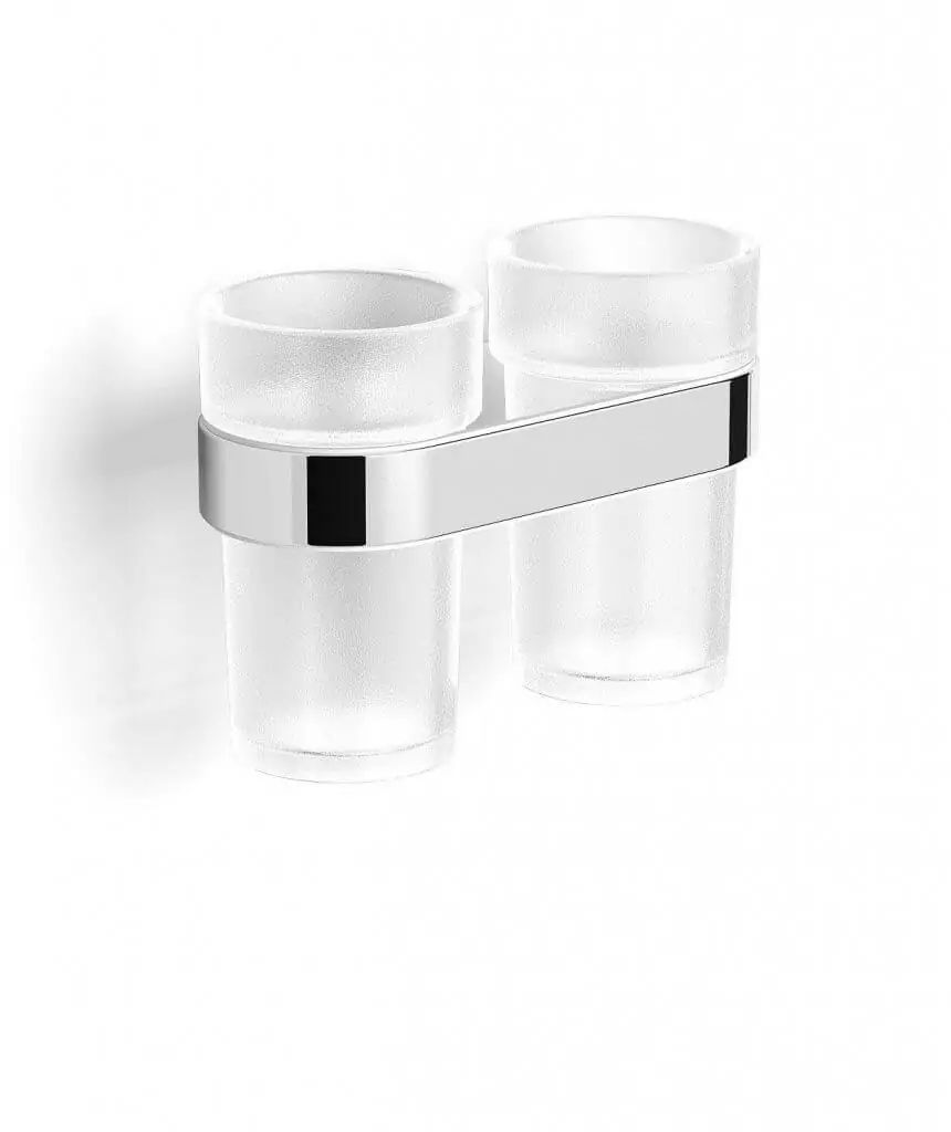 Uchwyt z dwoma kubkami – chrom / szkło matowe