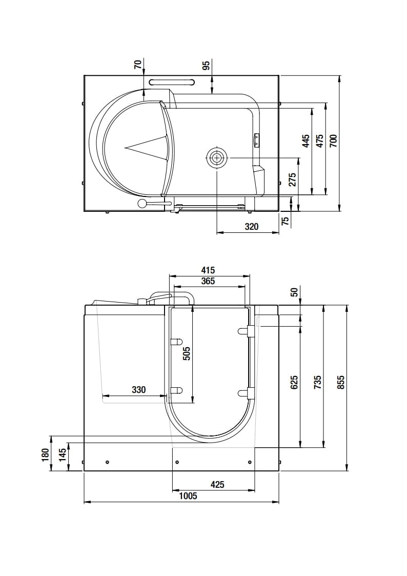 Specyfikacja wanny z drzwiczkami dla niepełnosprawnych MEDICA 100x70