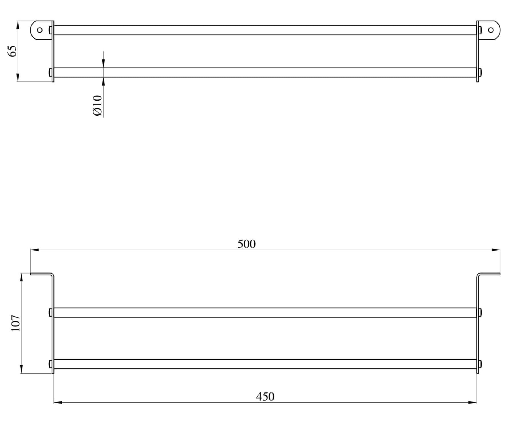 - Wymiary: 500 mm x 65 mm x 107 mm