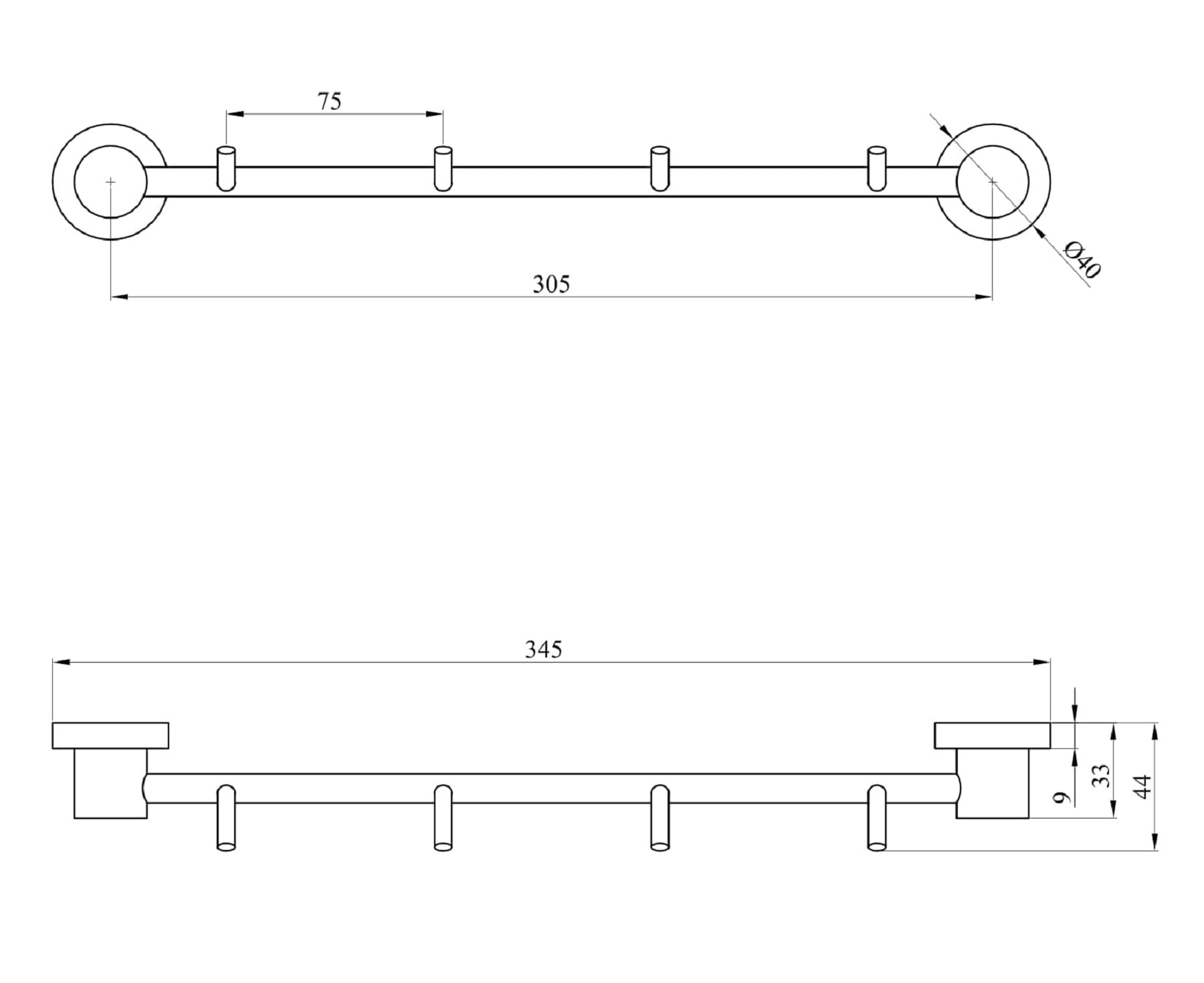 - Wymiary: 345 mm x 40 mm x 44 mm