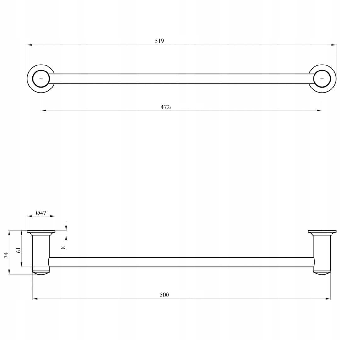 ✅ Wymiary: 519 mm x 47 mm x 74 mm