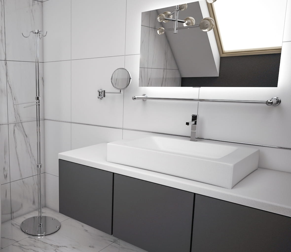 Wieszak łazienkowy stojący z prętami Chrom