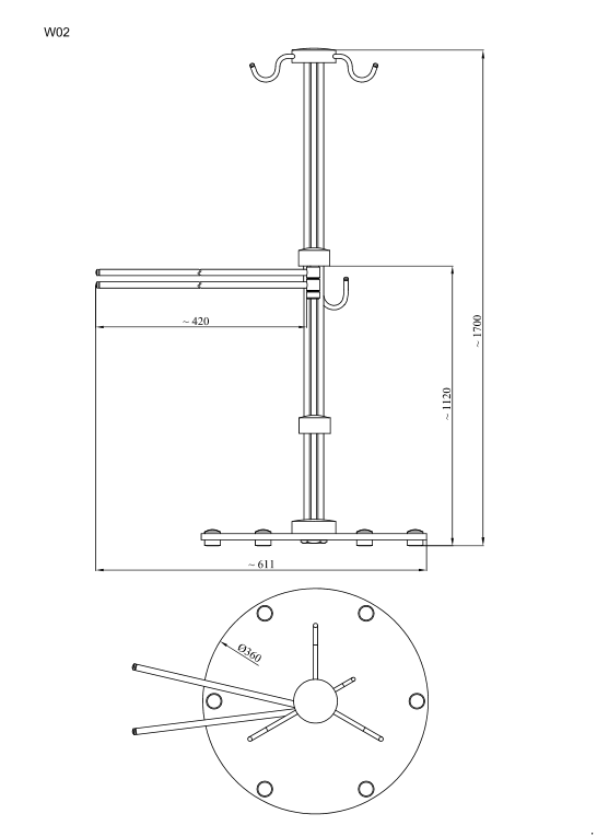 Wieszak łazienkowy stojący z prętami W02/CC (Chrom)