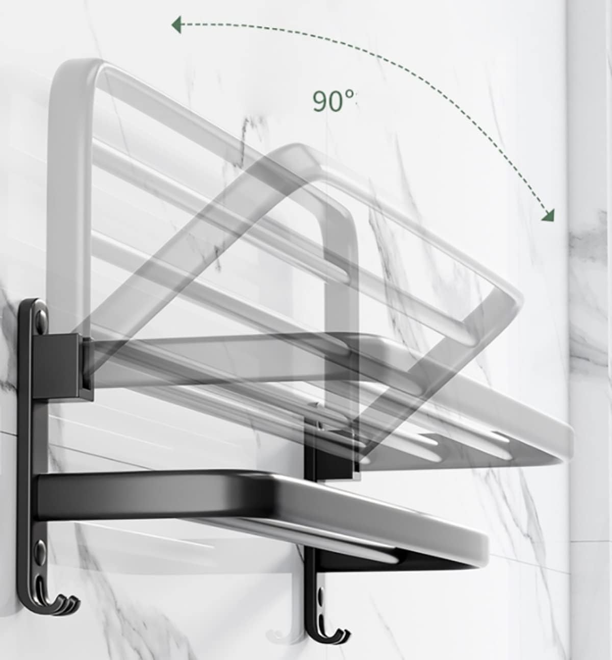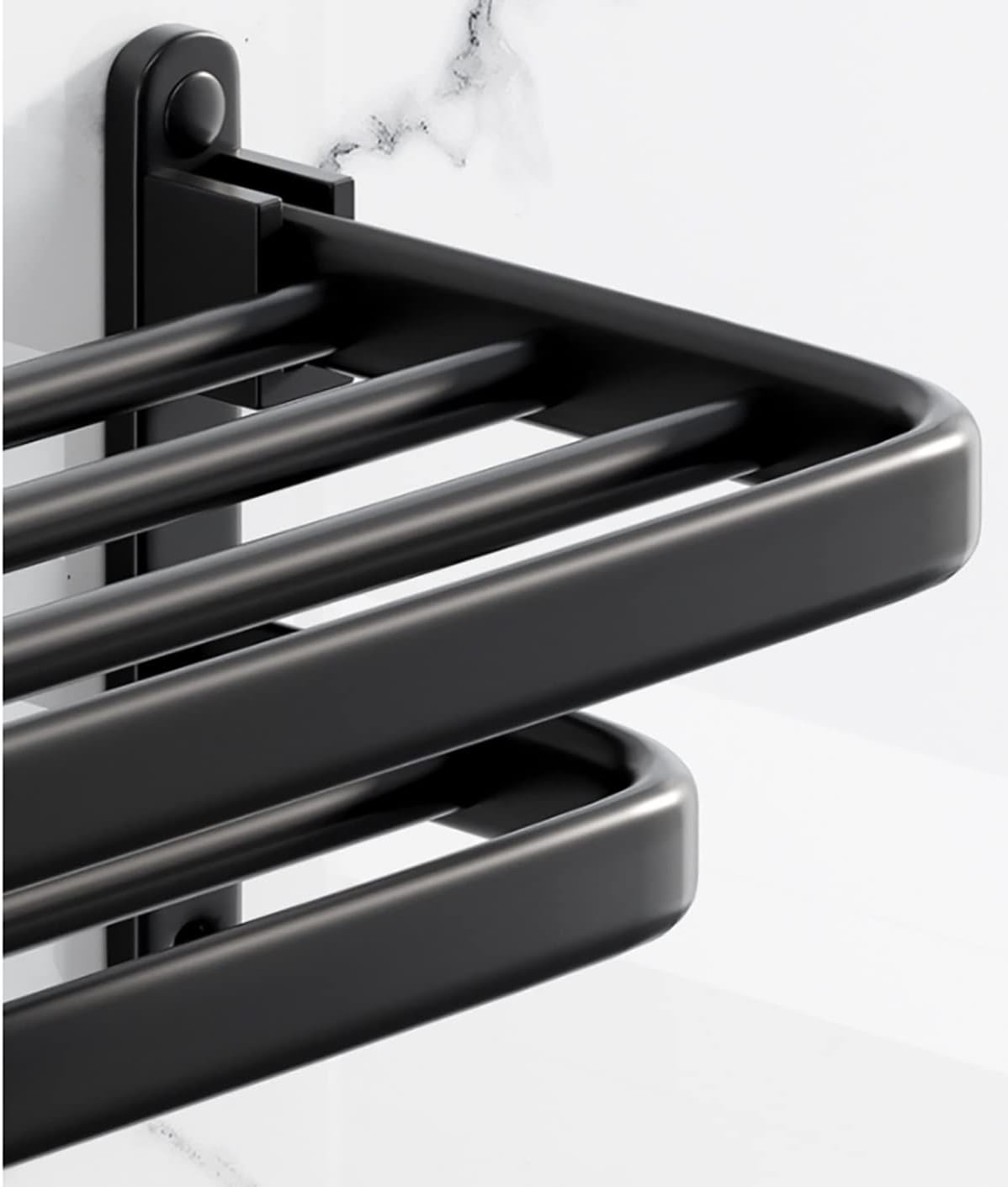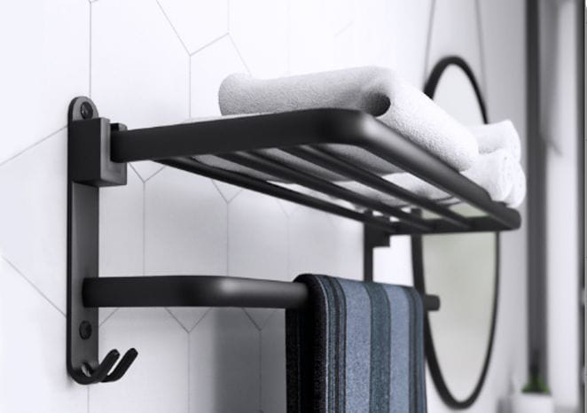 Wieszak łazienkowy z półką na ręczniki - czarny