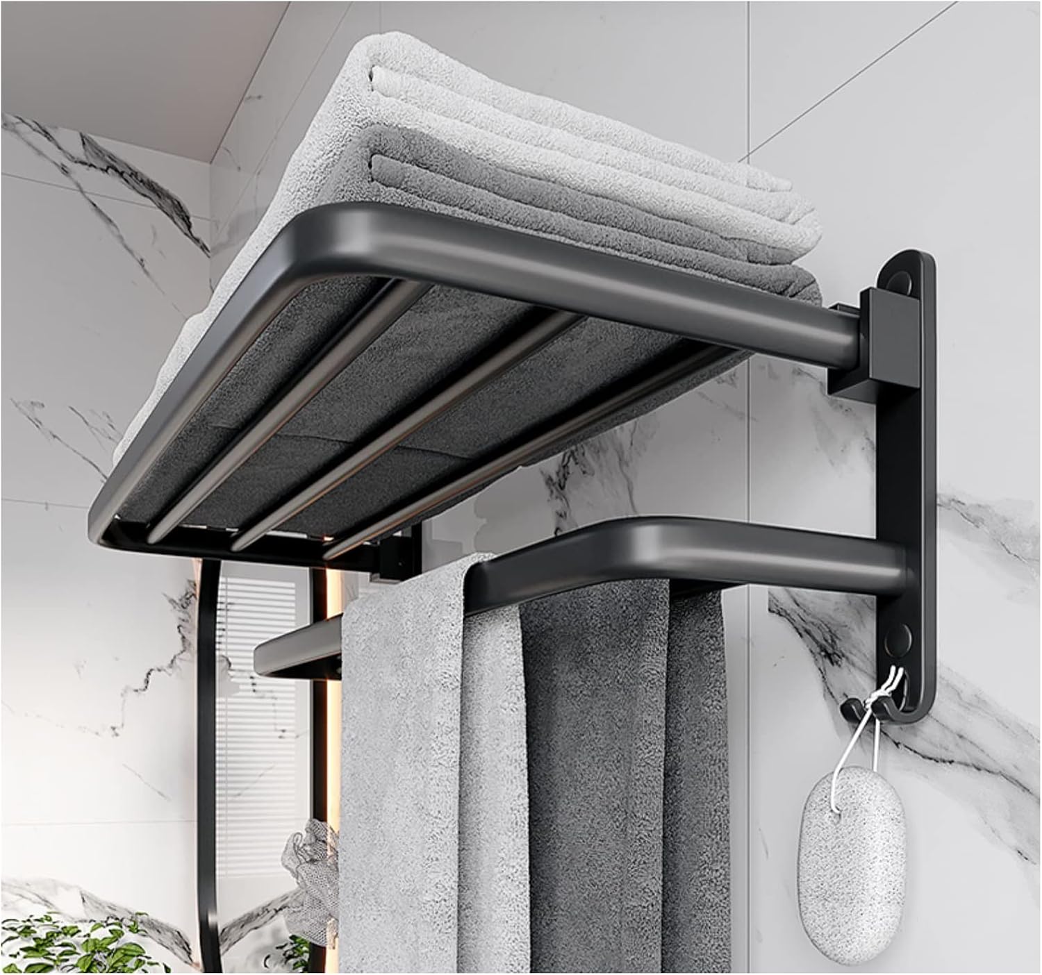 Wieszak łazienkowy z półką na ręczniki 60 cm czarny