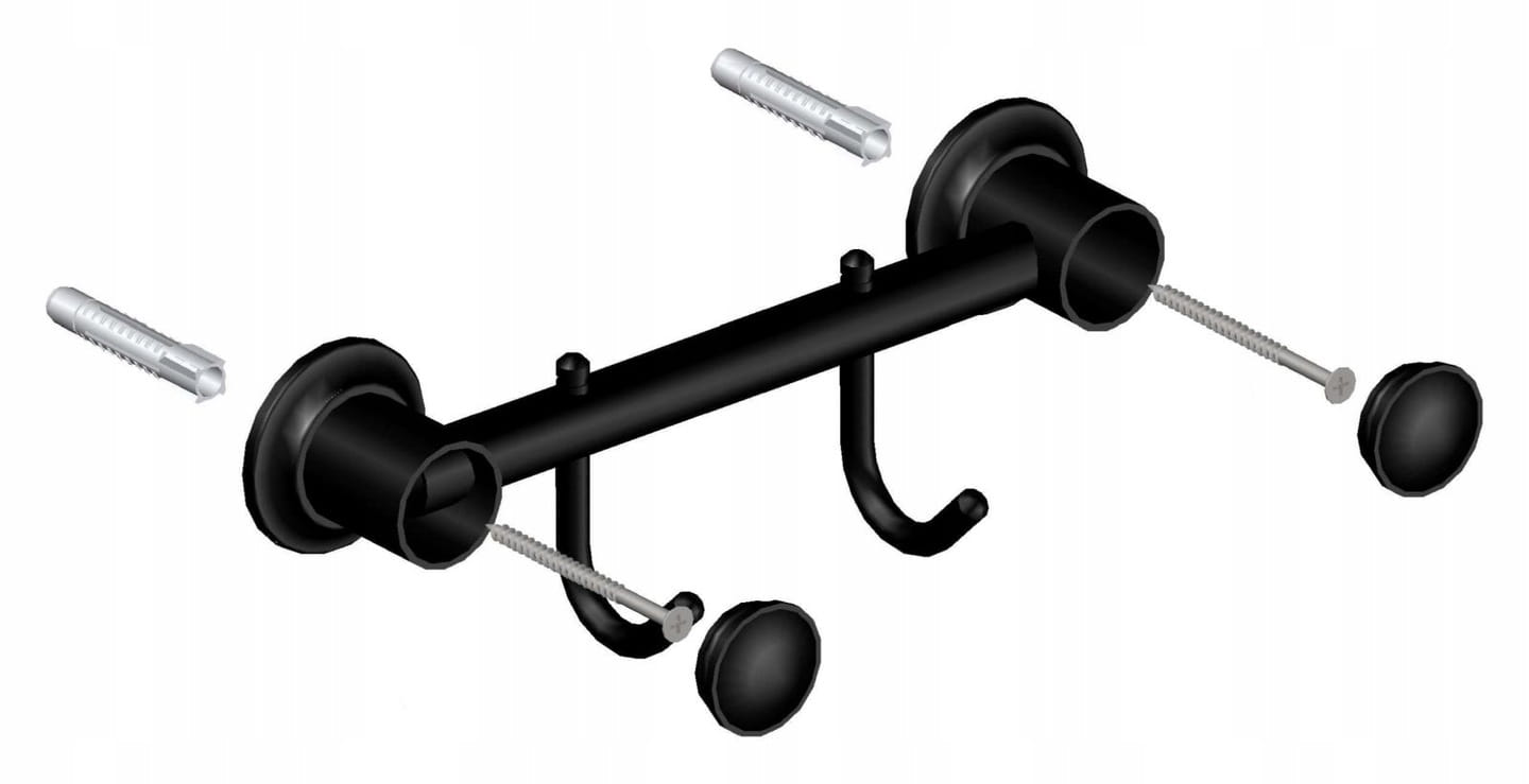 Nazwa produktu: Wieszak 2-hakowy czarny MAT ze stal nierdzewnej na kołki