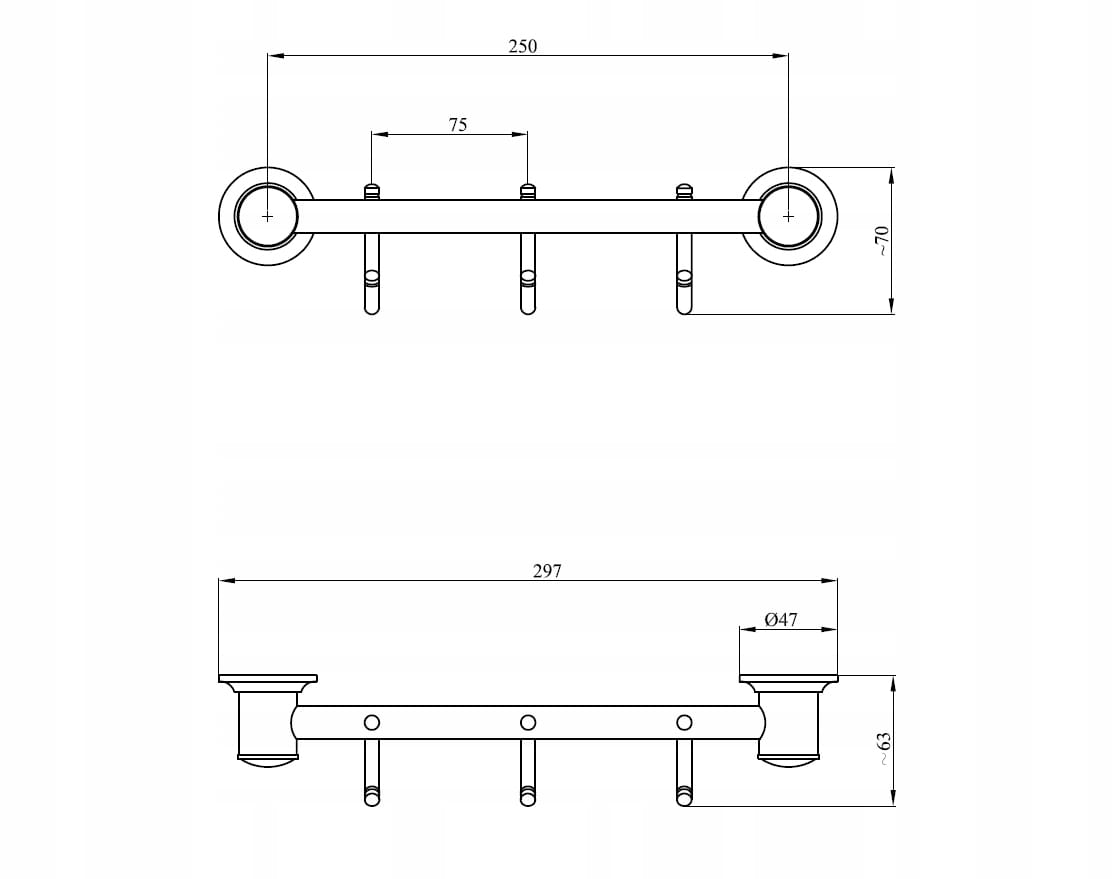 Wieszak na ręczniki 3-hakowy BIAŁY
