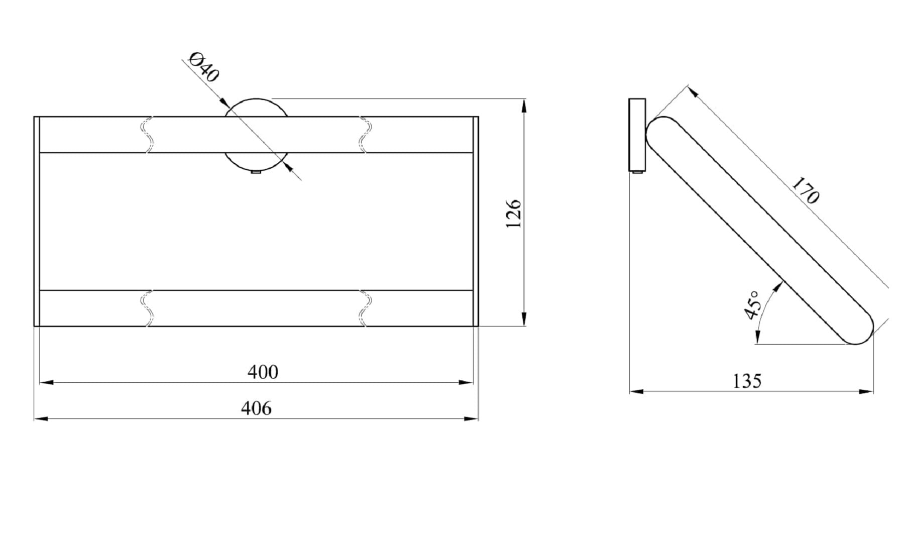 - Wymiary: 406 mm x 126 mm x 135 mm