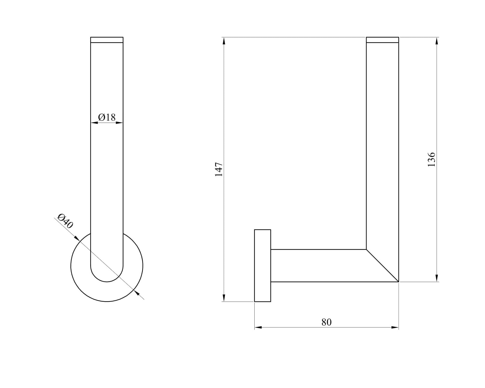 - Wymiary: 40 mm x 147 mm x 80, rurka Ø18