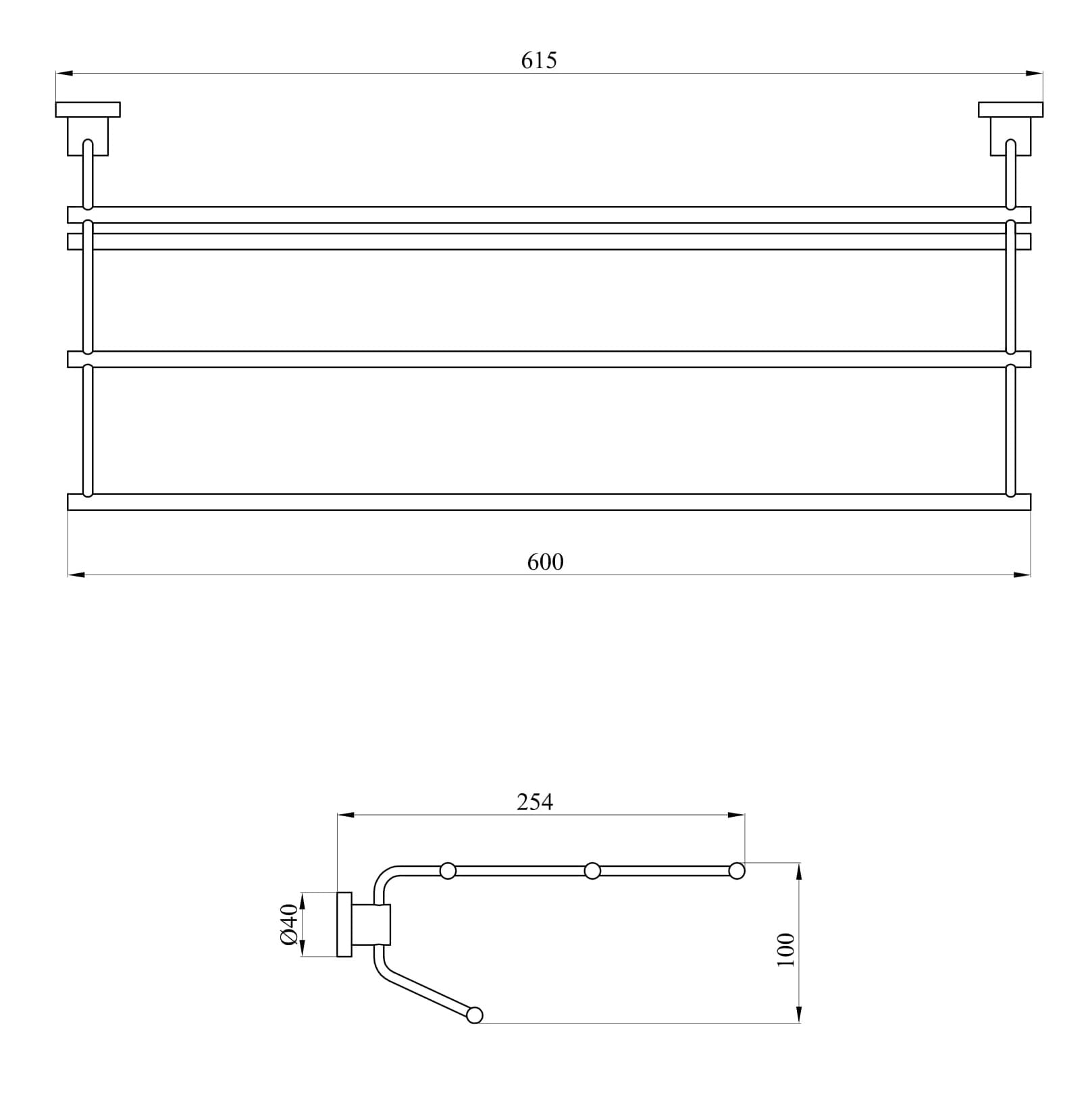 - Wymiary: 615 mm x 100 mm x 254 mm