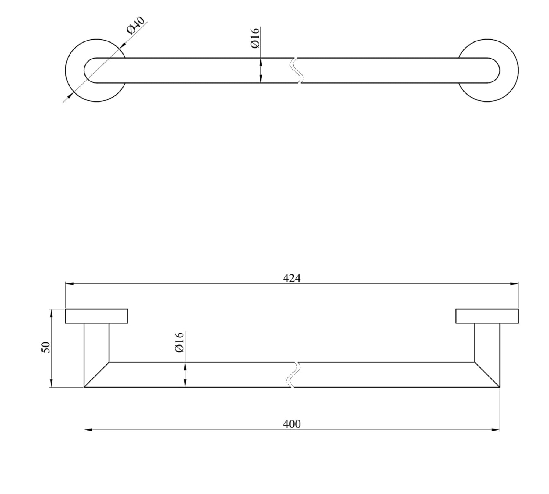 - Wymiary: 424 mm x 40 mm x 50 mm, rurka Ø16
