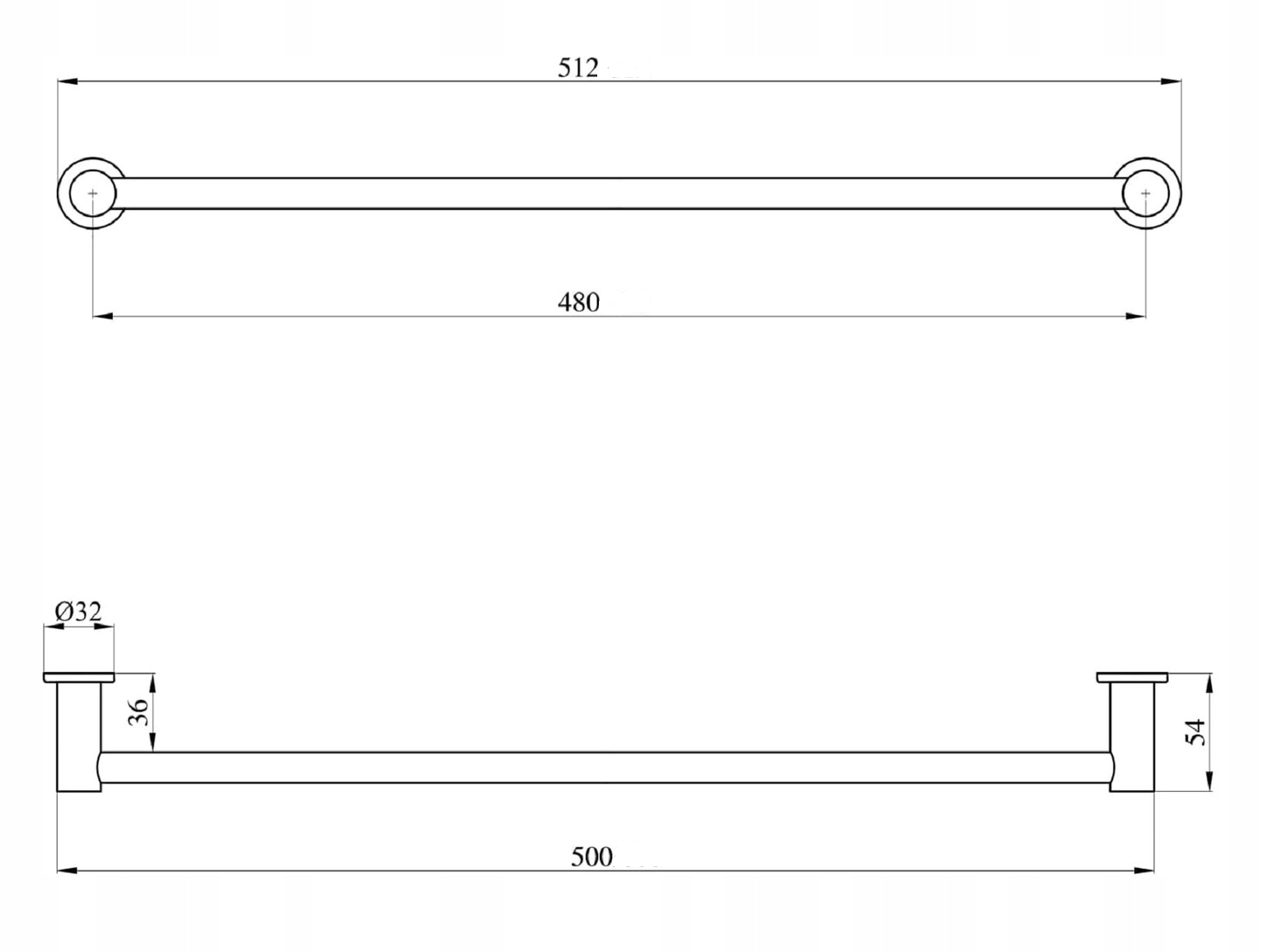 - Wymiary: 512 mm x 32 mm x 54 mm