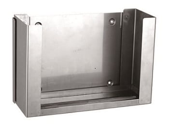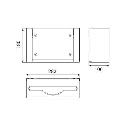 Wnękowy podajnik ręczników papierowych wykonany ze stali nierdzewnej matowej. Przeznaczony do zabudowy za lustrem lub ścianą.