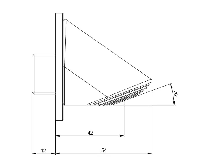 Wylewka natryskowa stała. Wykonana z mosiądzu pokrytego chromem. Wykonanie wylewki sprawia, że jest ona odporna na akty wandalizmu. Smukła budowa zdecydowanie utrudnia użytkownikowi zdewastowanie wylewki za pomocą uwieszenia się na niej co może skutkować wyrwaniem wylewki ze ściany. Sitko wykonane z tworzywa sztucznego z możliwością redukcji ciśnienia wody. Wyposażona w rozetę maskującą.