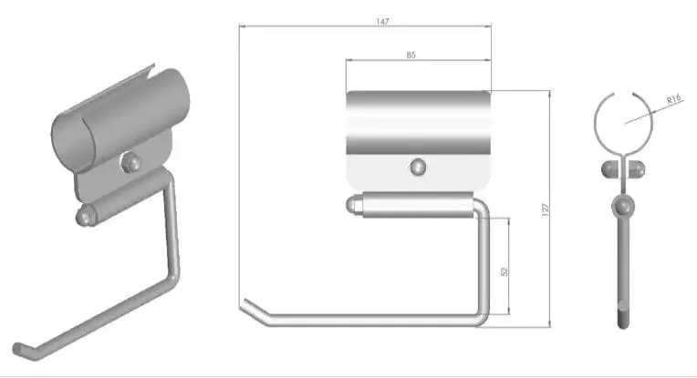 Zawieszka na papier toaletowy Stal nierdzewna z możliwością zastosowania do wszystkich poręczy, uchwytów stałych, uchylnych jak i wolnostojących o średnicy rury 25 mm