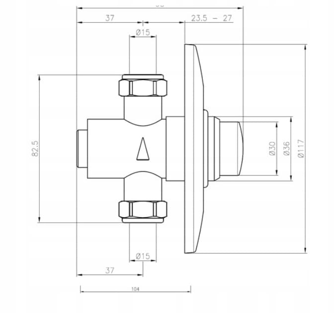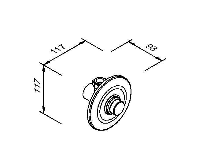 Wymiary zaworu: Wysokość 117 mm, szerokość 117 mm, głębokość 93 mm