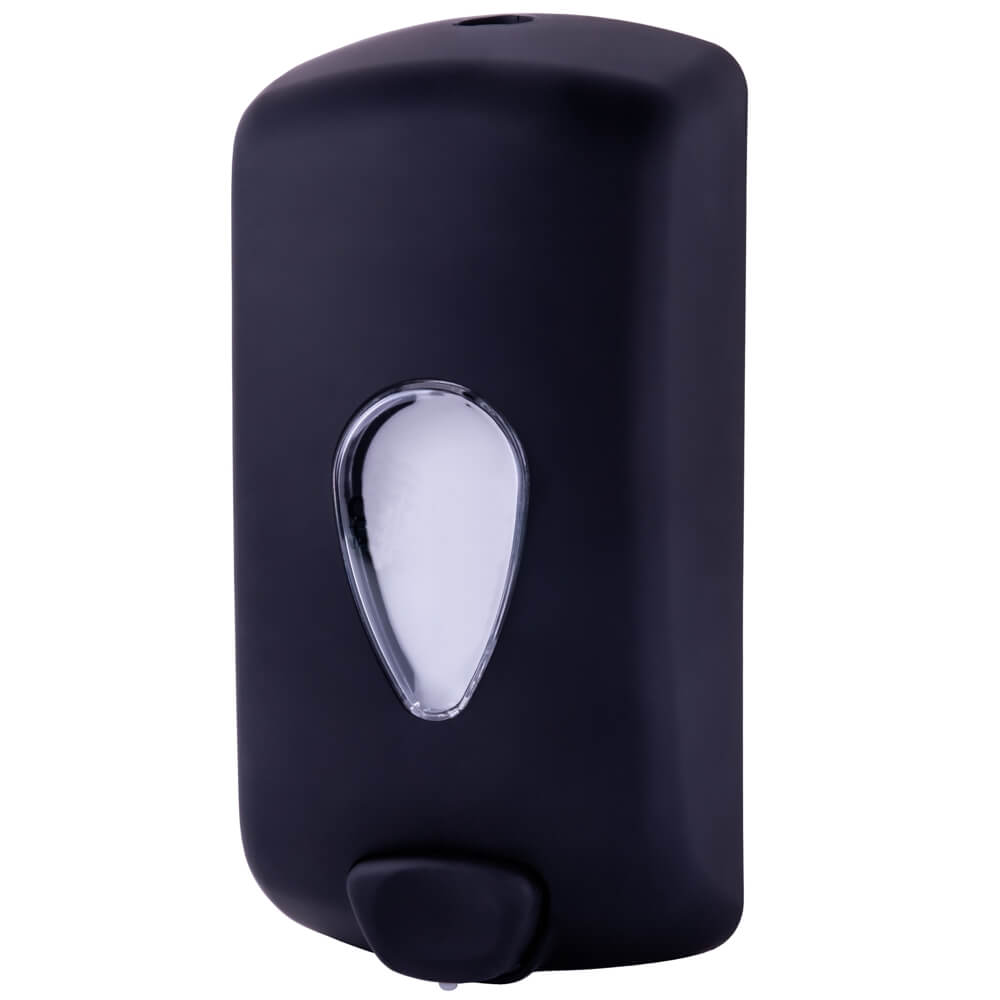Nowoczesny w czarnym kolorze dozownik do mydła w płynie. Produkty z tej serii produkowane są w Unii Europejskiej i z poszanowaniem środowiska oraz recyklingu. Produkty są bardzo wysokiej jakości, wykonane są z mocnego tworzywa oraz dodatkowej warstwy soft. Dzięki wytrzymałej i ergonomicznej konstrukcji zapewnia łatwość obsługi jedną ręką. Podajnik posiada wewnątrz butelkę wielokrotnego napełniania o pojemności 1000 ml. Dozownik do mydła deClean jest idealny do stosowania mydłem w płynie oraz żelem wodno-alkoholowym dzięki zaworowi zapobiegającemu kapaniu, podajnik umożliwia dozowanie również produktów płynnych, takich jak środki dezynfekujące.